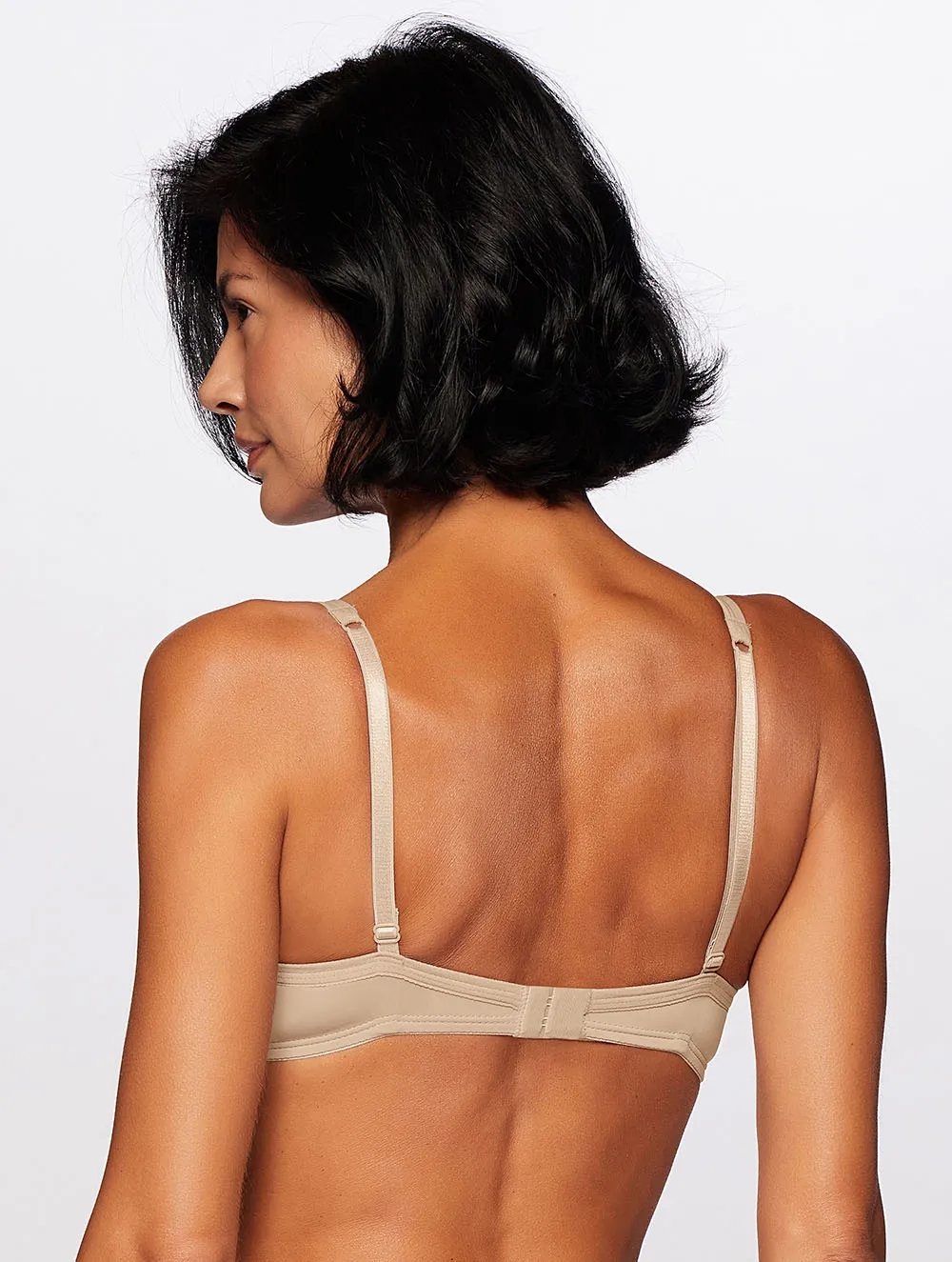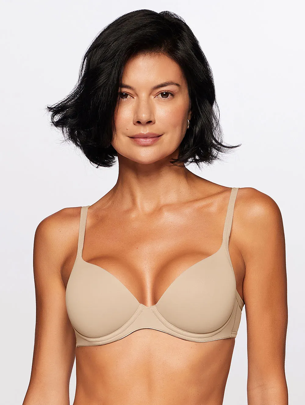 Sutiã em microfibra aveludada opaca com meia alça em viés, com aro e bojo macio para o dia a dia.